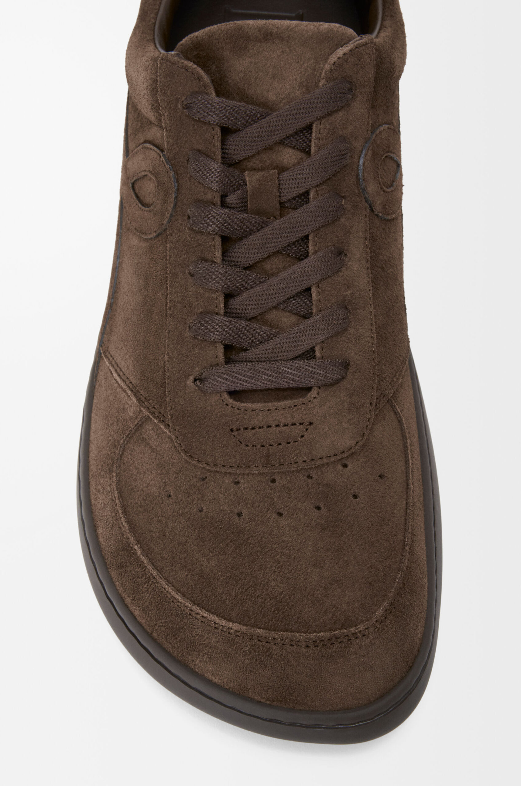 Sneaker in calfskin suede featuring a full monochrome look with an asymmetric toe shape and a nappa fussbett.
