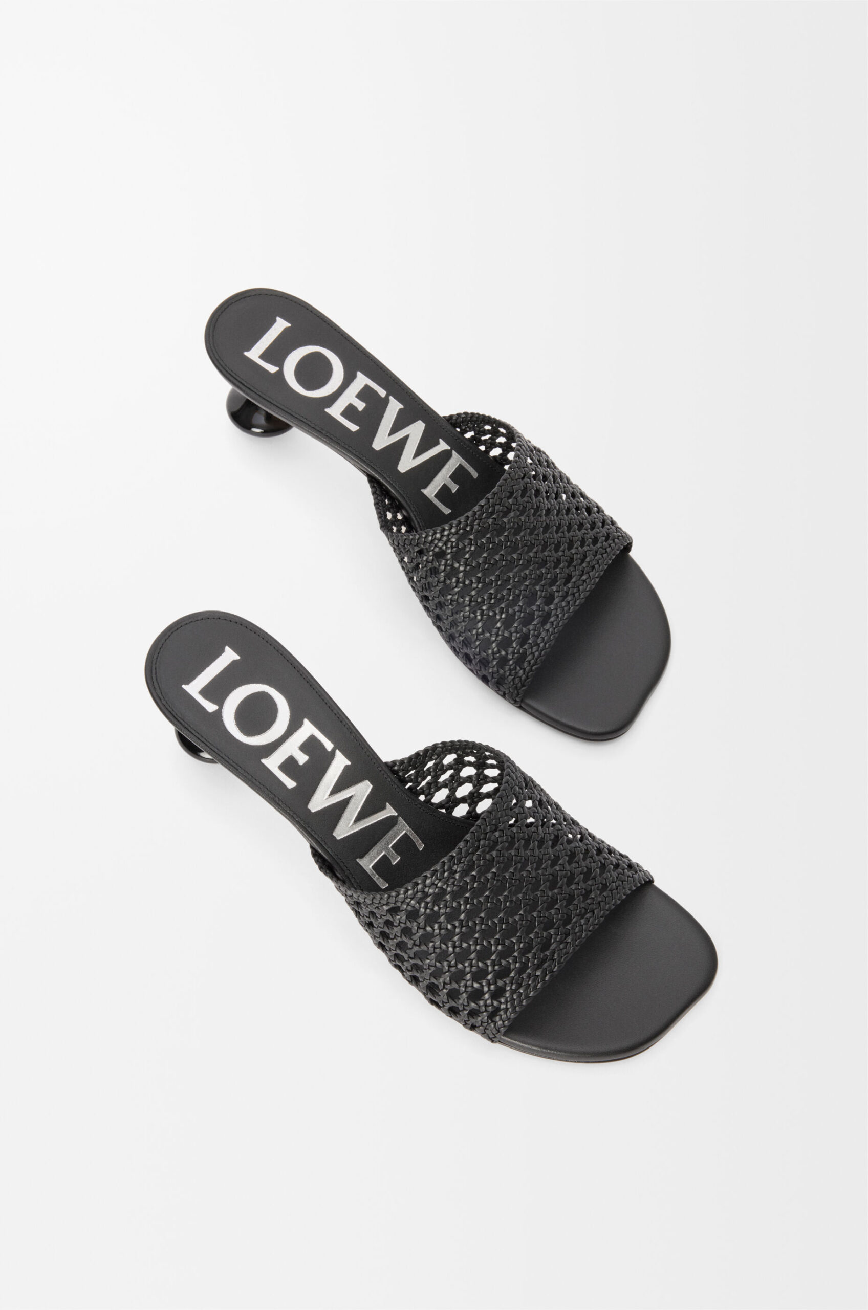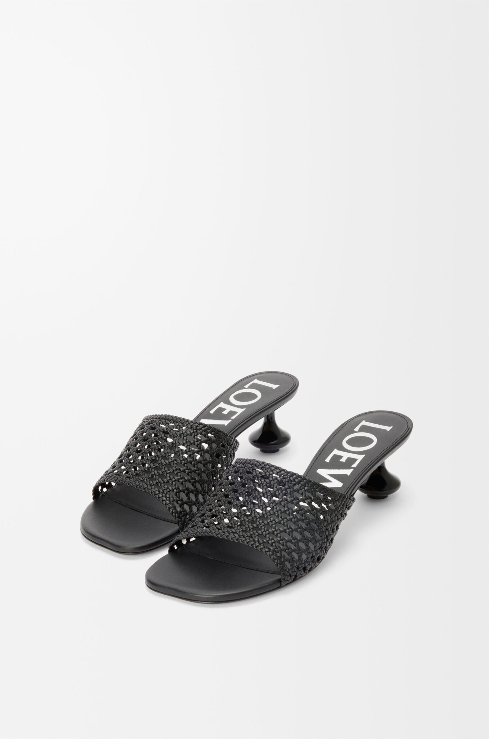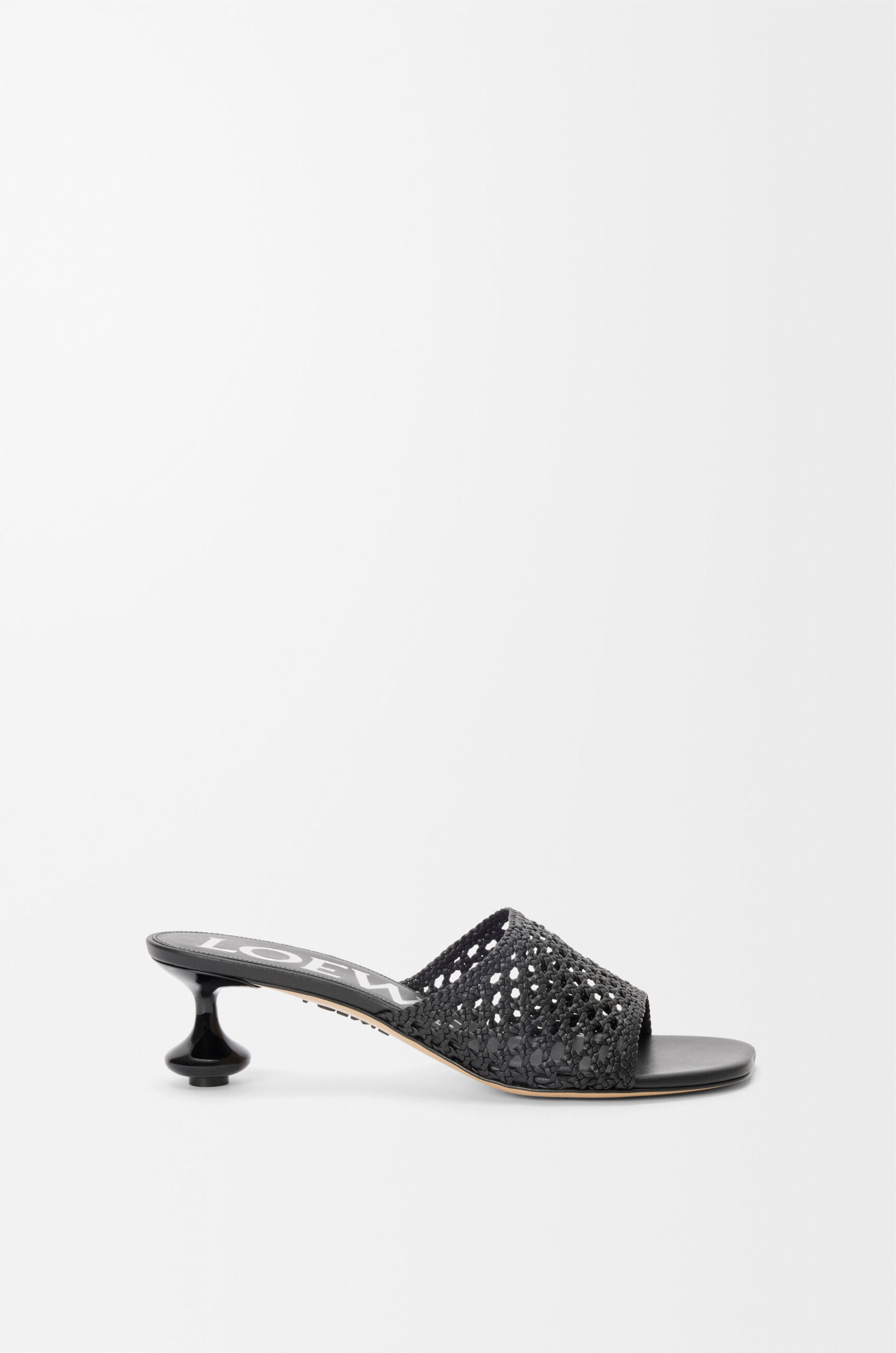 Heel slide crafted in woven calfskin, featuring a petal toe shape and signature Toy heel.